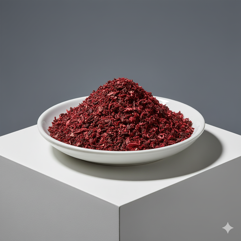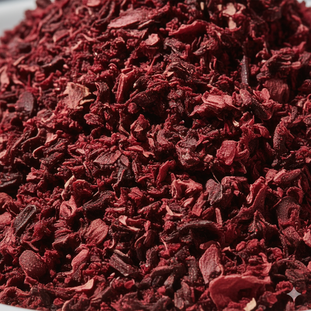 Crushed botanical offering faster color and flavor release than whole pieces while avoiding powder fines. Suited to tea blends, beverage syrups, and confectionery inclusions that benefit from controlled infusion kinetics.