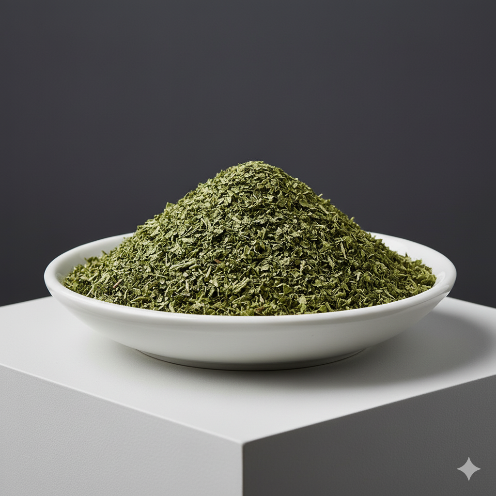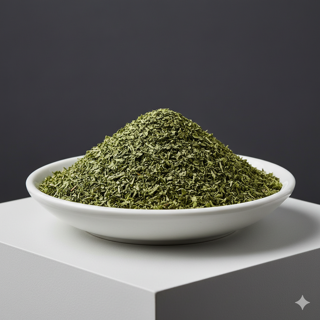 Cooled milling + classifier; re-screening and metal detection; consistent PSD for precise dosing; menthol notes protected by thermal
